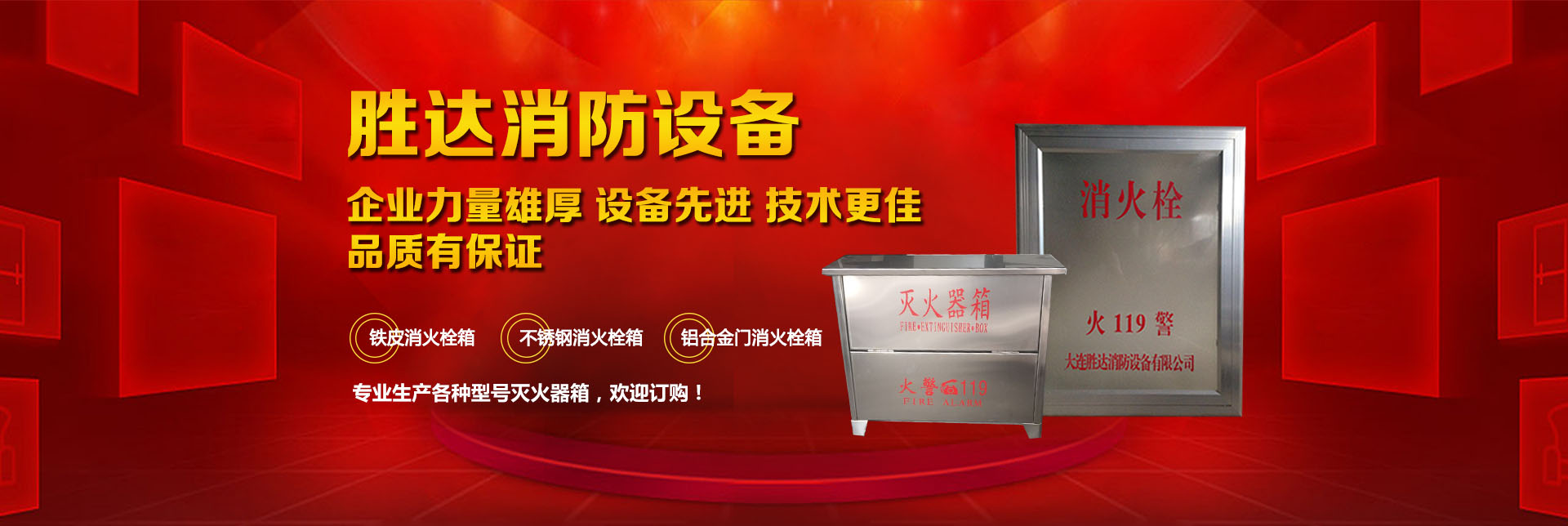 大連勝達消防設備有限公司本公司企業(yè)力量雄厚、設備先進,生產(chǎn)的所有消防產(chǎn)品均符合國家GB14561—J標準,品質有保證。我公司地理位置優(yōu)越,位于大連市甘井子區(qū)西北路847號交通便捷,公司專業(yè)生產(chǎn)各種型號滅火器箱、消火栓箱、鐵皮消火栓箱、不銹鋼消火栓箱、鋁合金門消火栓箱。消火栓箱系列產(chǎn)品,全部按照國家標準和行業(yè)標準進行生產(chǎn),并通過國家合格鑒定,得到了國家固定滅火系統(tǒng)和耐火構件質量監(jiān)督檢驗中心的產(chǎn)品認證和產(chǎn)品形式報告書。我們的消火栓箱系列產(chǎn)品具有外形美觀、結構先進、開啟靈活、使用可靠、消火應急燈具標志清晰、光色好、功耗低、使用壽命長、安裝使用簡便,可廣泛應用于高層建筑和工業(yè)等一些公關場所使用。